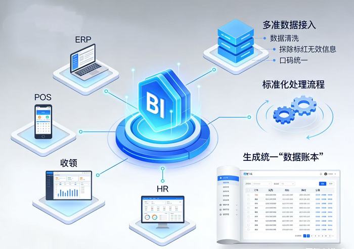 BI数据分析系统 助力团餐数字化发展在团餐与生鲜配送行业数字化转型的深水区,数据已成为企业核心竞争力的关键载体。然而,传统运营中“数据孤岛”林立、统计效率低下、决策依赖经验等痛点,长期制约着企业的规模化发展。上海霖客达信息技术有限公司深耕团餐与生鲜配送场景,打造专属BI分析系统,以“全链数据整合、智能分析洞察、可视化决策支撑”为核心,为企业破解运营难题,构建数据驱动的高效增长引擎。 一、打破数据壁垒,筑牢分析底座 霖客达BI分析系统深度打通自身ERP系统及POS收银、HR等外部系统,实现订单、采购、配送、库存、财务等多源数据的无缝集成与实时同步。通过智能数据清洗引擎完成数据标准化处理,剔除无效信息、统一数据口径,确保数据真实可靠,告别人工汇总的繁琐与误差,让企业拥有统一的“数据账本”。